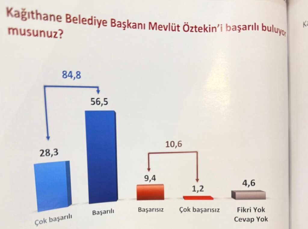 31 Mart 2024 seçimleri geçeli henüz 1.5 yıl olmasına rağmen halkın belediye ye güveni devam ediyor. Başkan Öztekin’in başarısı ve popüleritesi yerini korurken Kağıthane yerelinde belediyecilik açısından ciddi bir sorun görünmüyor.