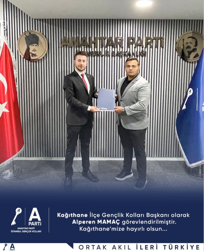 Anahtar Parti Kağıthane’de teşkilatlanmaya gençlik kollarından başladı. Kağıthane’de gençlik çalışmaları ile öne çıkan Alperen Mamaç, Anahtar Parti Gençlik Kolları Başkanı oldu. Mamaç, görevlendirme yazısını İstanbul İl Teşkilatı’ndan aldı