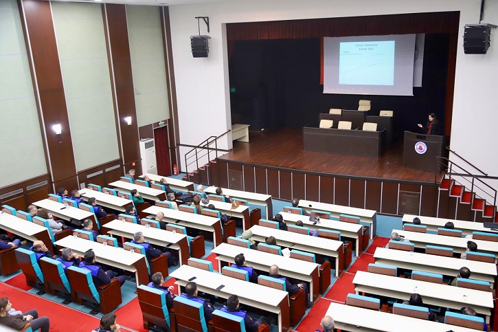 Halk sağlığı uzmanı Dr. Fatma Betül Akçakaya Özer tarafından gerçekleştirilen seminerde; kanserin toplum sağlığı açısından önemi, Türkiye’nin demografik yapısı, dünyada ve Türkiye’de güncel kanser yükü verileri ile kanser durumu analizine ilişkin kapsamlı bilgiler paylaşıldı. Programda ayrıca kanser etiyolojisi, risk faktörleri, kanserin ekonomi üzerindeki etkileri ve kanser trendlerinde yaşanan değişimler ele alındı.