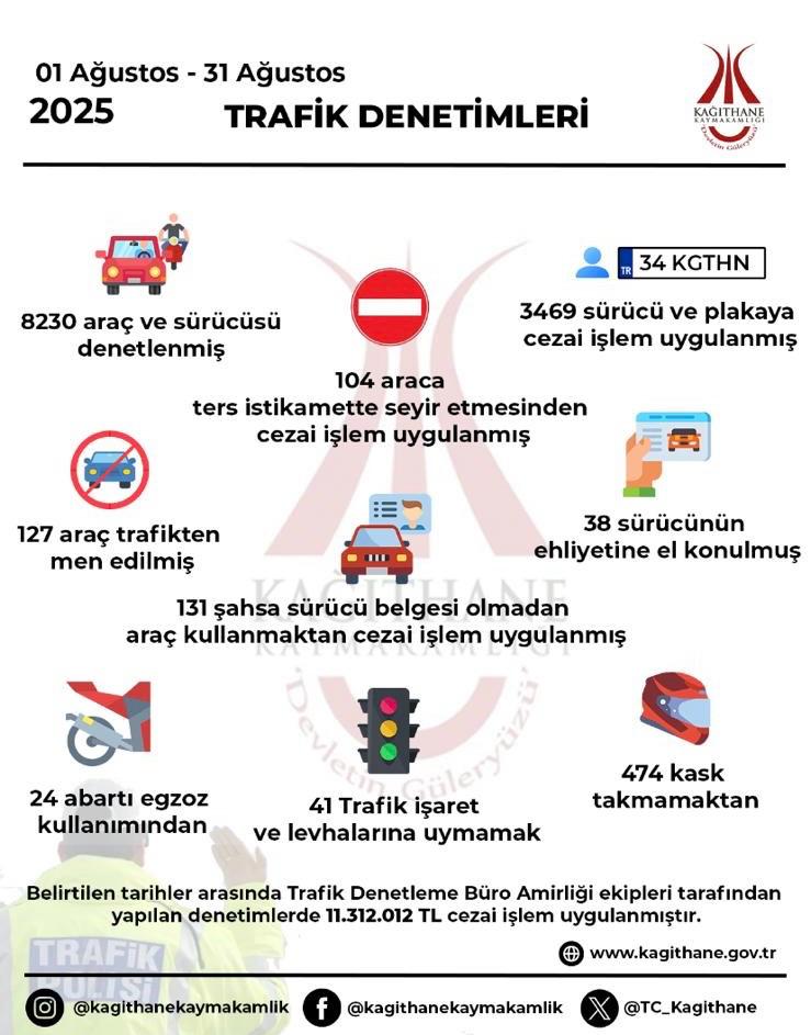 Vatandaşlarımızın huzur ve güvenliği için Kağıthane İlçe Emniyet Müdürlüğümüzce 01 Ağustos-31 Ağustos 2025 tarihleri arasında yapılan denetimlerde:
